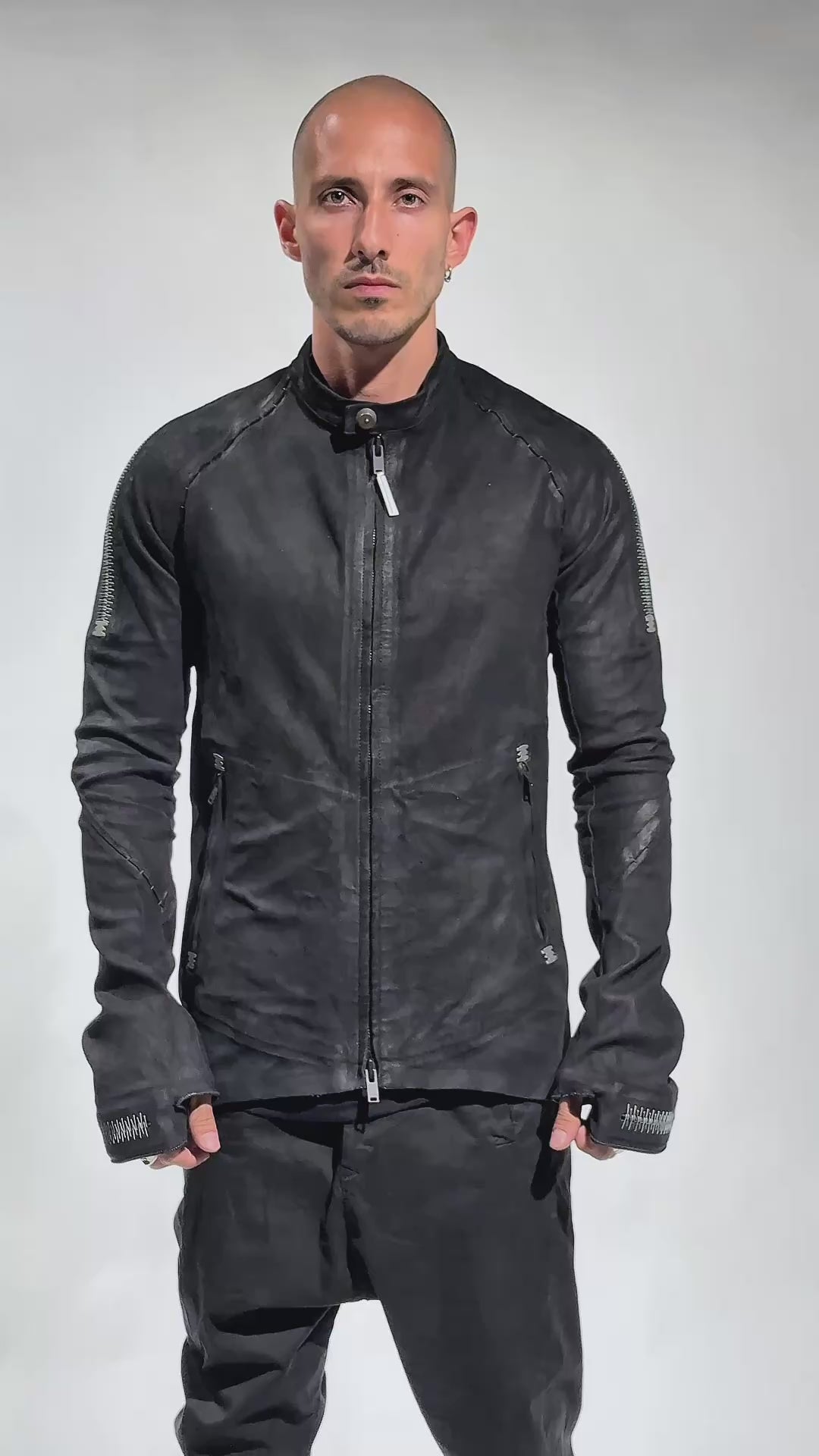 A meticulously constructed leather jacket that merges architectural precision with artisanal craftsmanship. Handcrafted in Paris, this Isaac Sellam creation exemplifies the designer’s signature mastery of structure and form. The jacket’s clean, angular lines and sculpted silhouette emphasize the natural geometry of the body, while exposed seams and subtle metal accents create a striking interplay between raw texture and refined detailing. The result is an avant-garde piece that transcends seasonal trends, blending contemporary artistry with timeless strength.