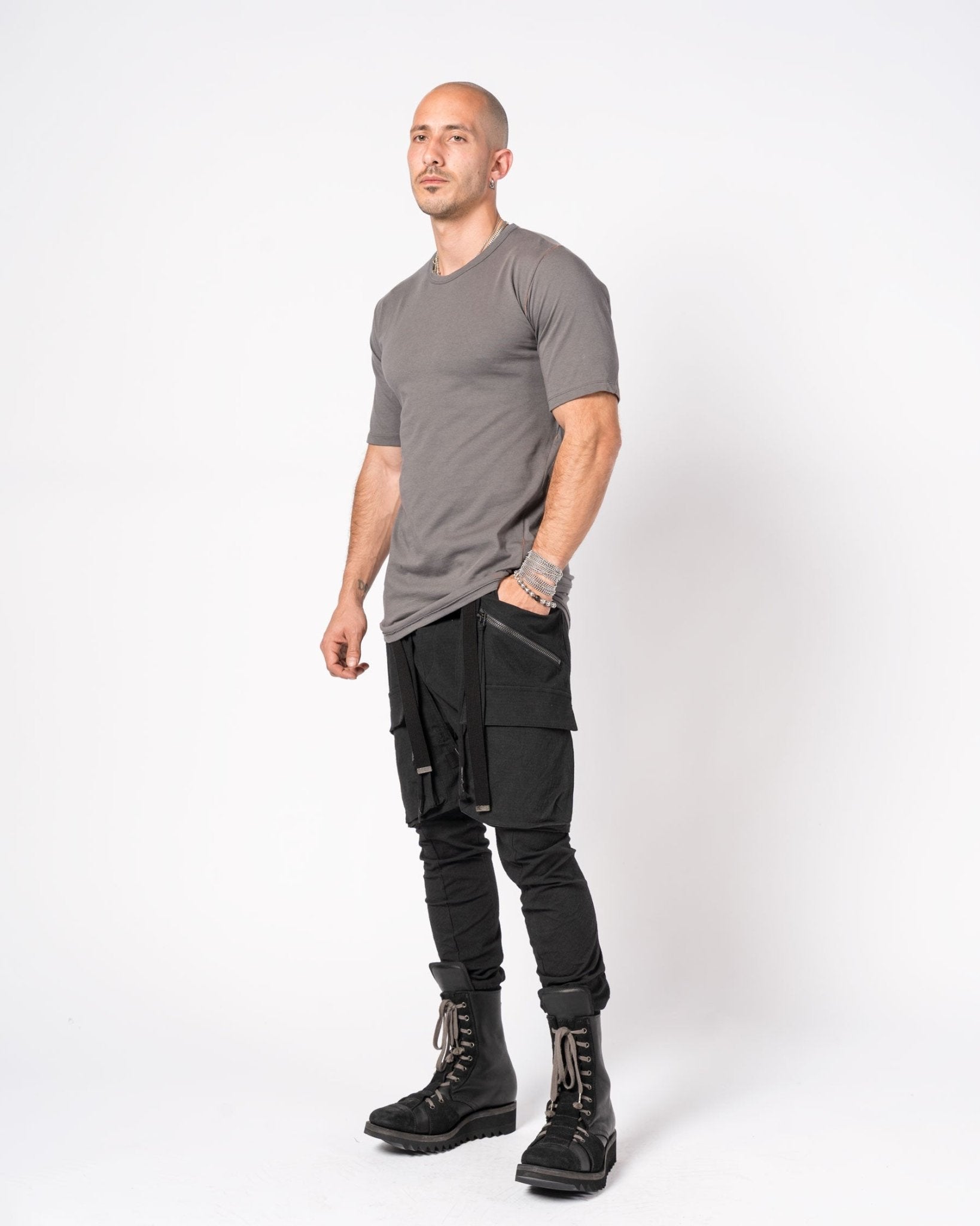 Slim-cut T-shirt made from 100% cotton with a smooth finish and natural stretch. Features a rounded hemline at the back and distinct contrast stitching along the shoulders and sleeves for subtle structure. A minimal design elevated by refined construction and precision detailing.